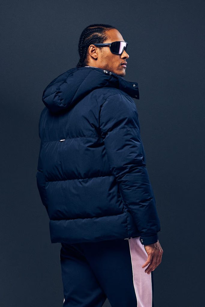 Matelassage généreux, marine profond, ligne contemporaine. Une doudoune qui affirme son caractère sans un mot.