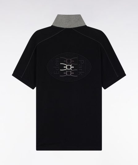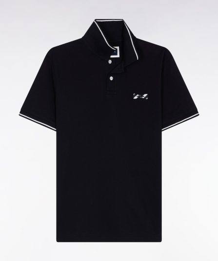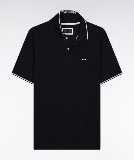 Polo à manches courtes en piqué coton noir passepoils colorés