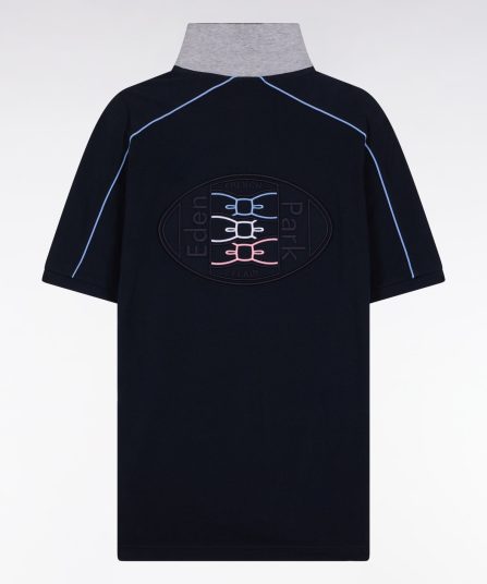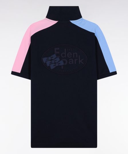 Polo à manches courtes en piqué coton marine découpes tricolores