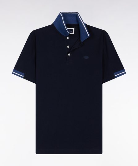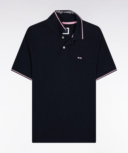 Polo à manches courtes en piqué coton marine passepoils colorés