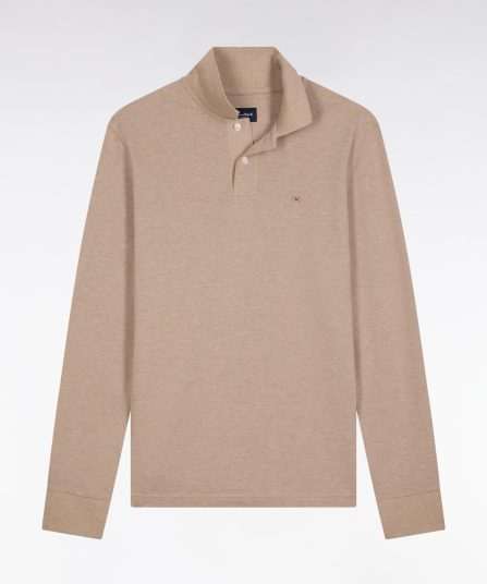 Polo à manches longues bimatière marine broderie 10 coupe Relaxed