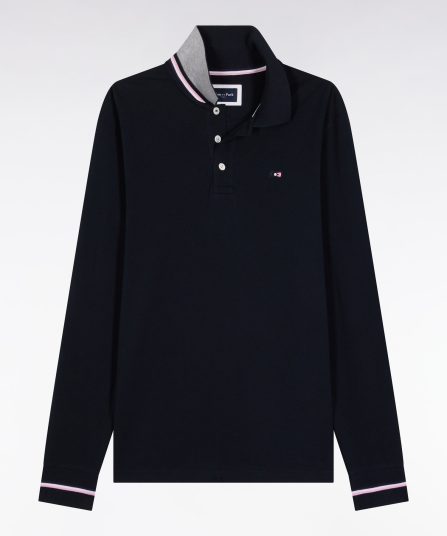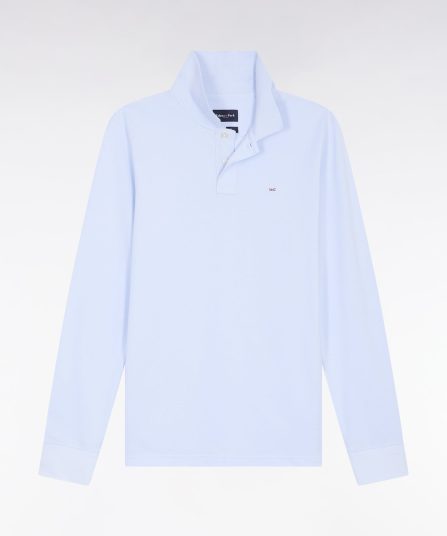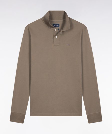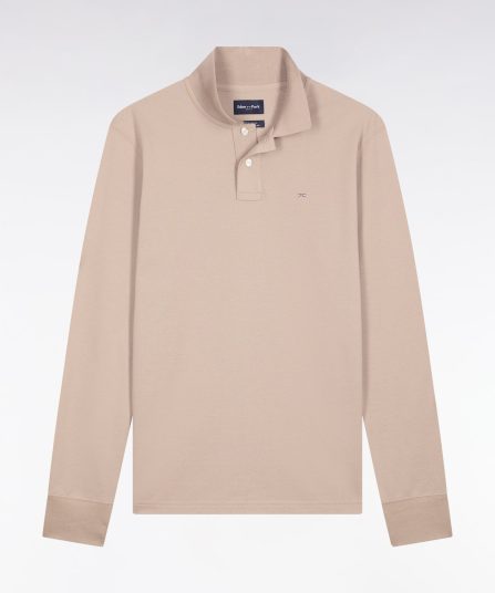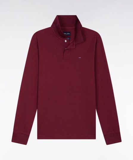 Polo à manches longues en coton Pima bordeaux coupe droite