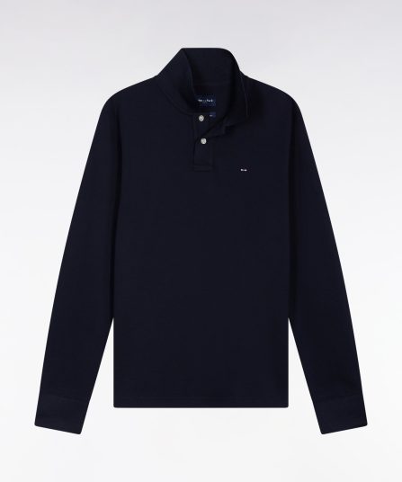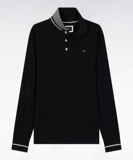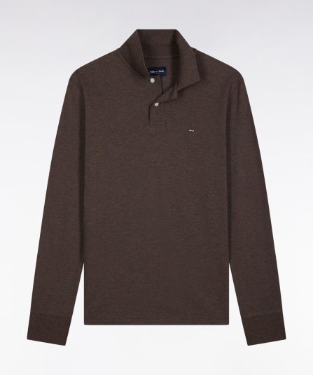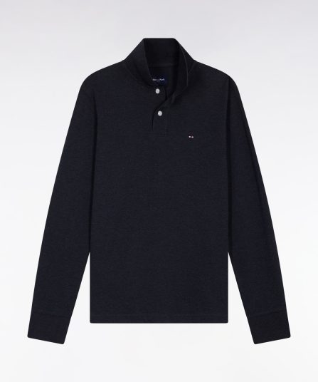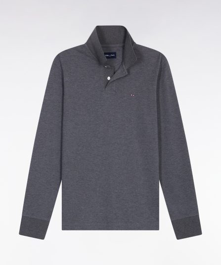 Polo à manches longues en coton chiné gris foncé coupe droite