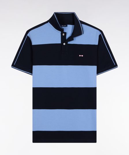 Polo cerclé en piqué coton à manches courtes en coton bleu