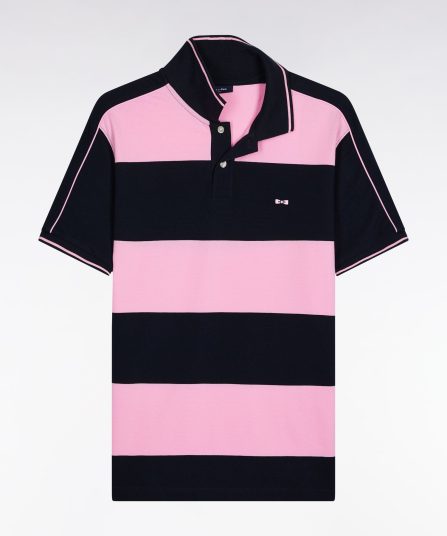Polo cerclé en piqué coton à manches courtes en coton marine