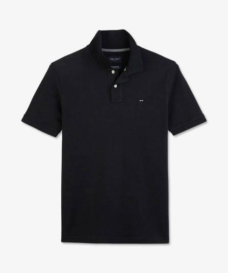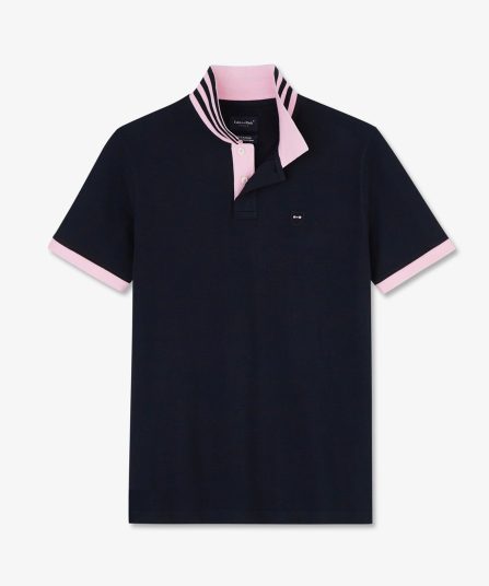 Polo manches courtes en coton marine passepoils blancs coupe droite