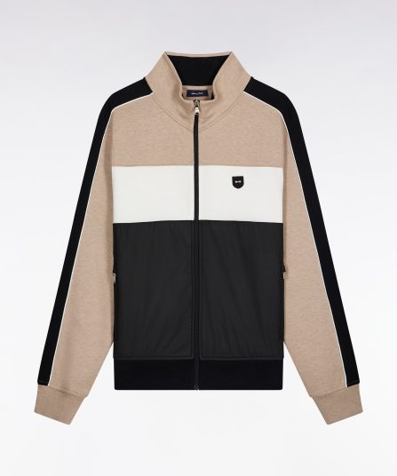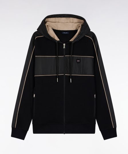 Sweatshirt zippé à capuche en molleton et nylon noir et beige
