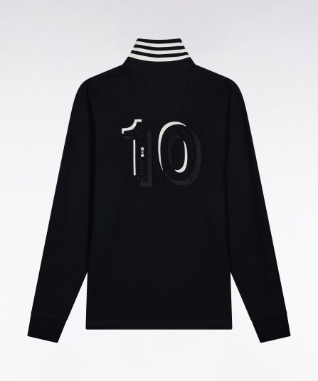 Maillot à manches longues en jersey épais noir broderie dos coupe droite