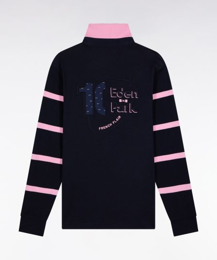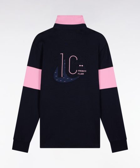 Maillot à manches longues en jersey bicolore marine et rose coupe droite