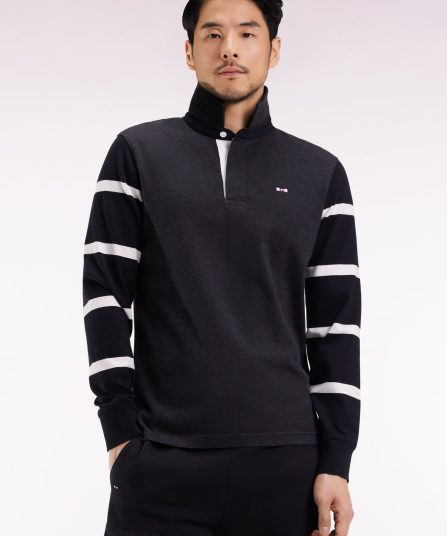 Maillot à manches longues en jersey épais noir rayé coupe droite