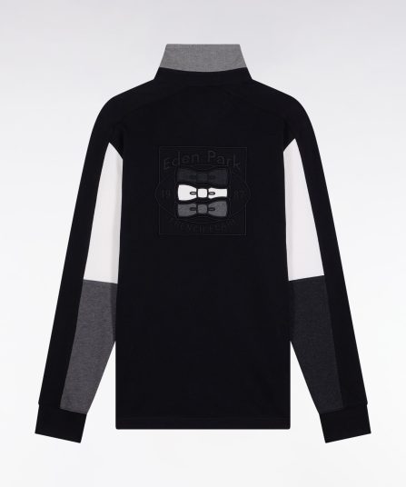 Maillot à manches longues en jersey coton épais noir brodé coupe droite