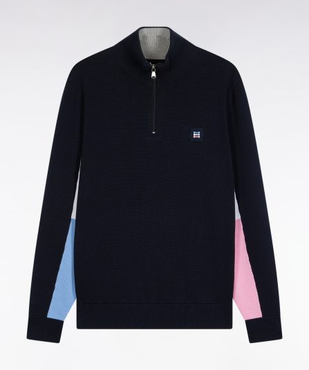 Polo à manches courtes en piqué coton marine découpes tricolores