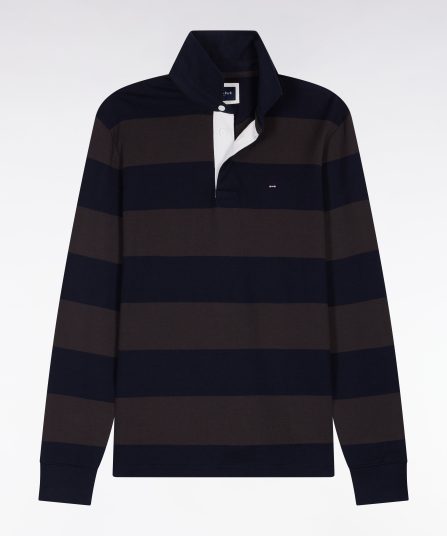 Maillot manches longues en jersey à rayures rugby marron et marine