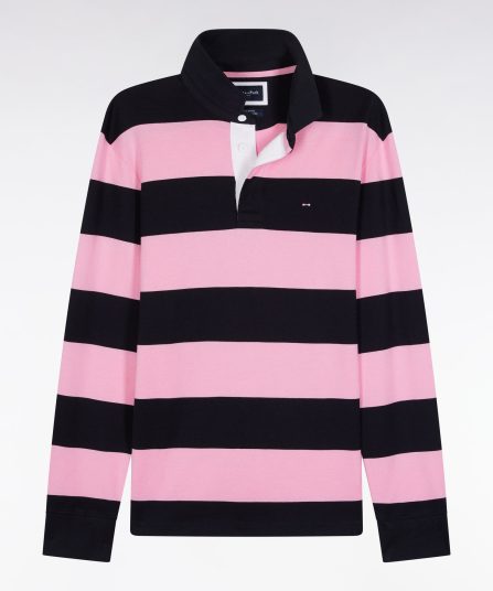 Maillot manches longues en jersey à rayures rugby rose et marine