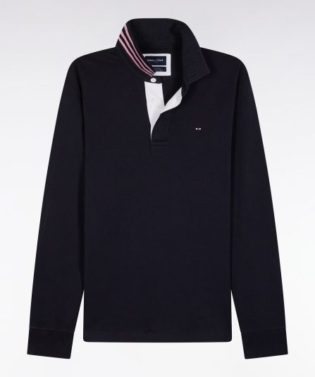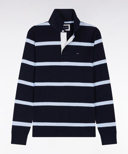 Maillot manches longues en jersey marine dessous de col rayé