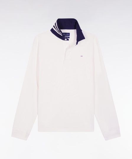 Maillot manches longues en jersey blanc dessous de col rayé