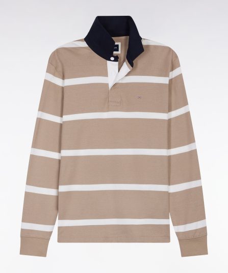 Maillot manches longues en jersey à rayures rugby ciel et écru