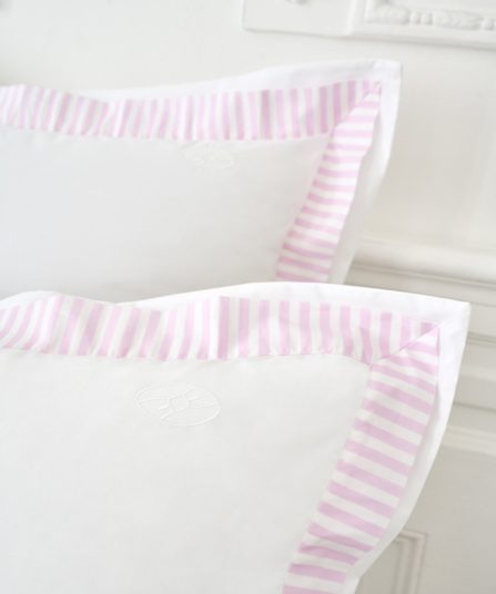 Lot de taies d’oreillers carrées en coton blanc à bordure rose rayée