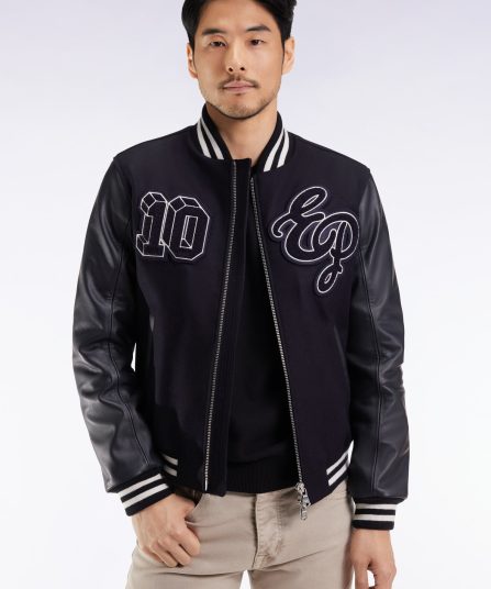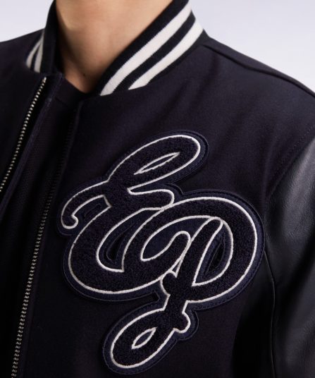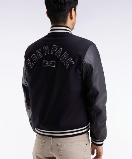 Craquez pour l’esprit varsity revisité de ce blouson Teddy marine au style affirmé. Corps en flanelle de laine mélangée, manches en cuir véritable et finitions en bord-côtes rayé : chaque détail incarne le savoir-faire Eden Park et les inspirations sportives de nos collections de mode. Broderies emblématiques, doublure intérieure cerclée en camaïeux, et finitions cuir sur les poches font de ce blouson Teddy un classique du vestiaire masculin twisté avec audace. Un clin d’œil assumé à l’héritage sportif de notre maison revisité avec élégance. Fermeture zip double curseur en métal argenté