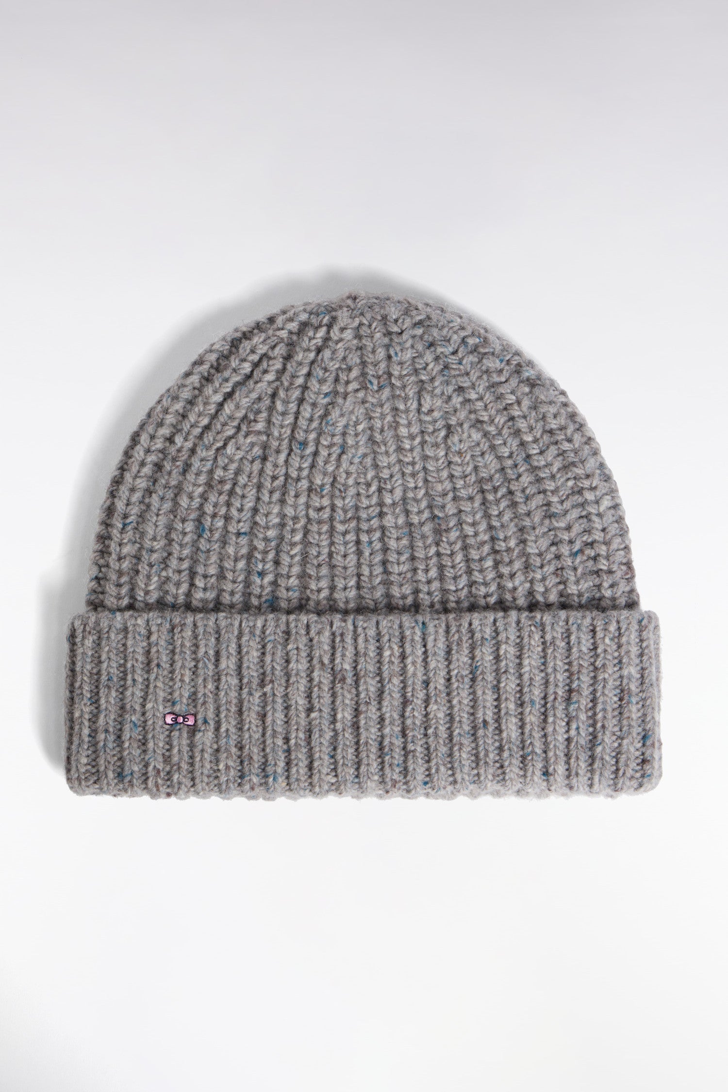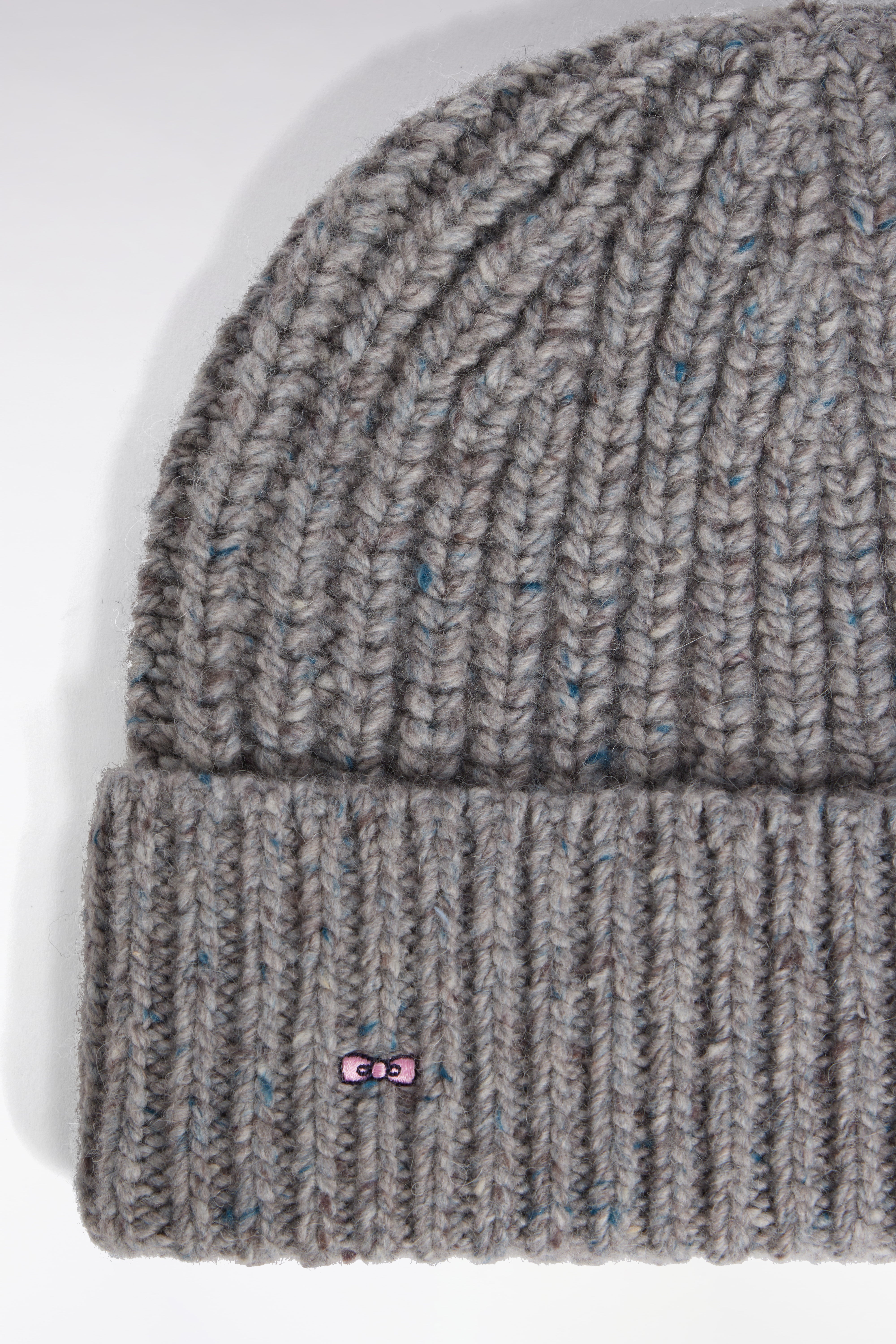 Tricoté dans un doux mélange comportant laine vierge et alpaga, ce bonnet en maille côtelée se pare de notre discrète broderie nœud papillon sur le revers. Un bonnet doux et confortable qui accessoirise une multitude de silhouettes