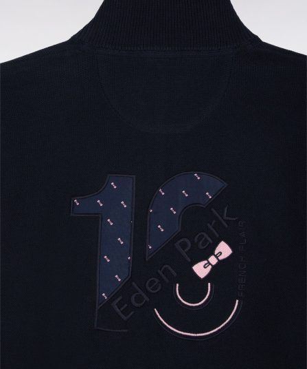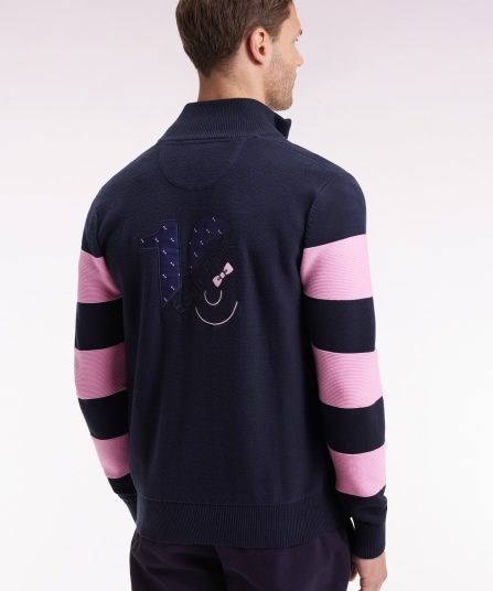 Cardigan zippé en coton marine à rayures de manches roses coupe droite
