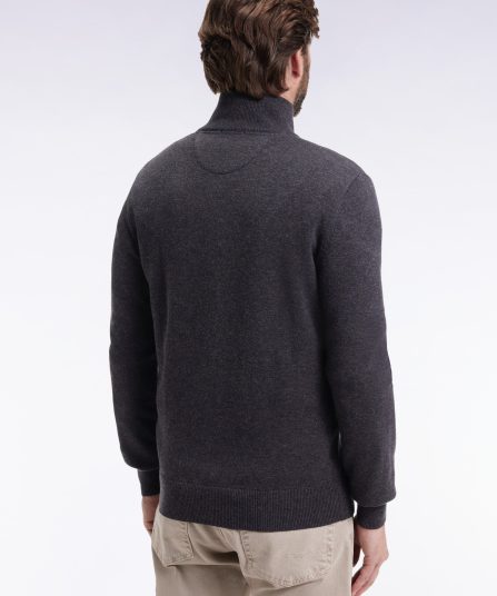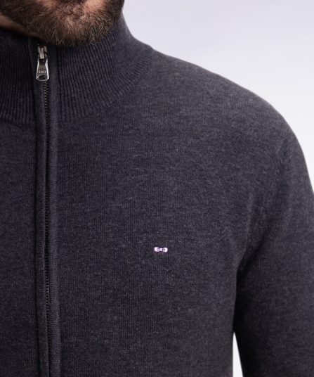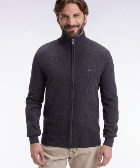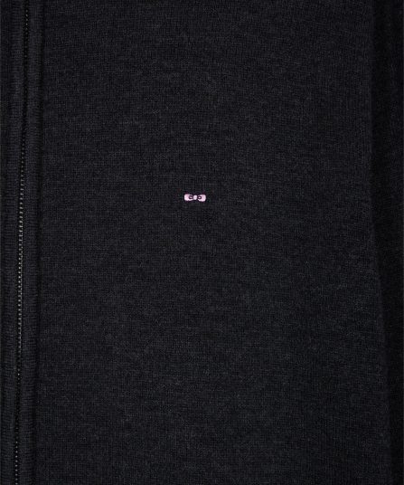 Cardigan zippé en laine et coton gris foncé coupe droite