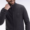 Cardigan zippé en laine et coton gris foncé coupe droite