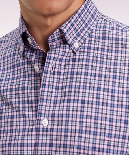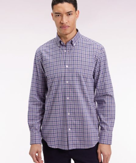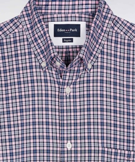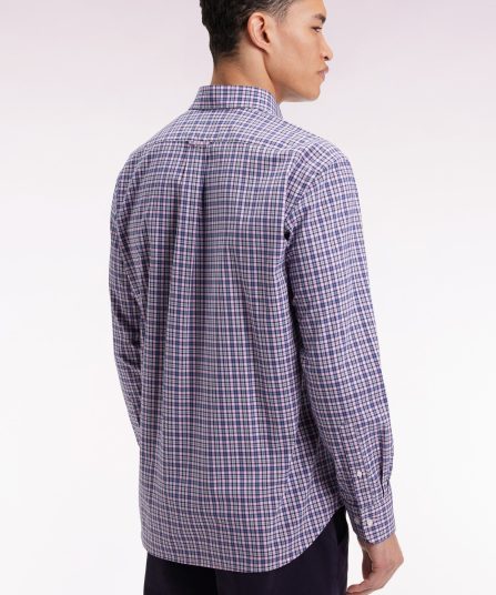 Cette chemise masculine à carreaux, déclinée en popeline de coton marine ponctuée de beige ou de rose, offre une élégance naturelle et discrète. Sa coupe droite et son coton doux en font une pièce confortable, idéale pour structurer une tenue décontractée avec allure