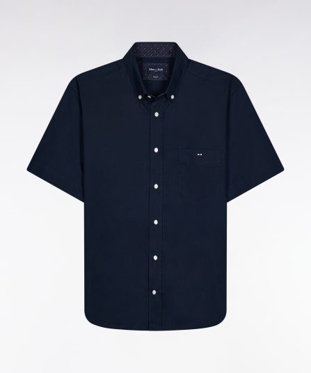 Chemise à manches courtes noire intérieur de col imprimé coupe droite