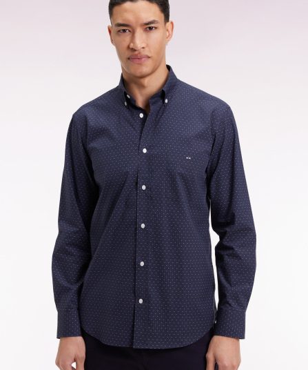 Conçue dans son imprimé exclusif à notre maison, cette chemise homme au motif dessiné dans nos ateliers conjugue originalité et élégance. Le regard attentif y décèlera l’emblème Eden Park : le nœud papillon, répété en all-over et associé à des cercles pour un effet graphique et original. Un modèle collector pour amateurs d’élégance French Flair. Cette chemise en popeline de coton proposée dans trois coloris comporte toutes les finitions soignées emblématiques du savoir-faire de notre maison française dont son col à pointes boutonnées et ses boutons ovales siglés