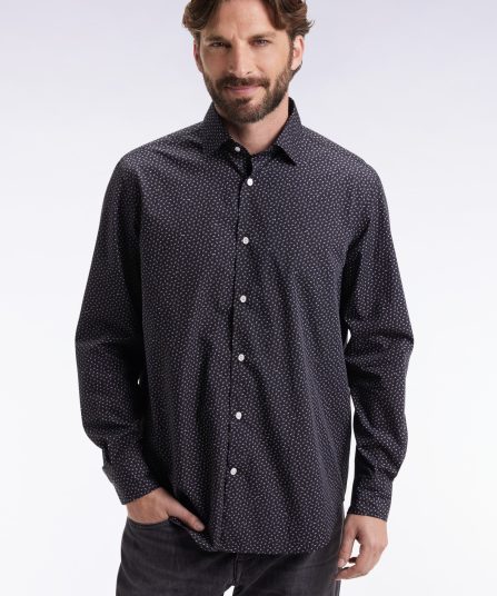 Graphique sans être tape-à-l’œil, cette chemise masculine joue la carte de l’élégance discrète tout en minimalisme. Son imprimé régulier aux accents géométriques apporte relief et style, tout en conservant un porté confortable grâce à sa coupe droite et sa confection 100% coton. Optez pour cette chemise seyante à l’occasion d’une soirée