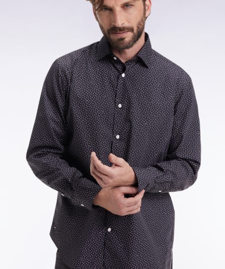 Graphique sans être tape-à-l’œil, cette chemise masculine joue la carte de l’élégance discrète tout en minimalisme. Son imprimé régulier aux accents géométriques apporte relief et style, tout en conservant un porté confortable grâce à sa coupe droite et sa confection 100% coton. Optez pour cette chemise seyante à l’occasion d’une soirée