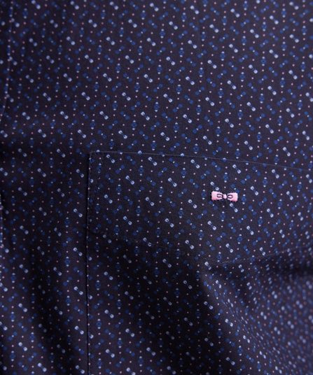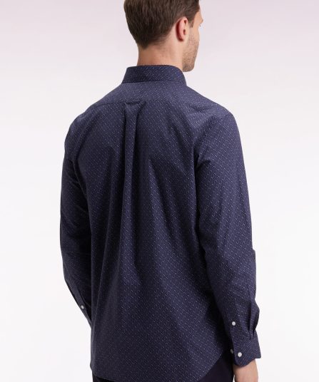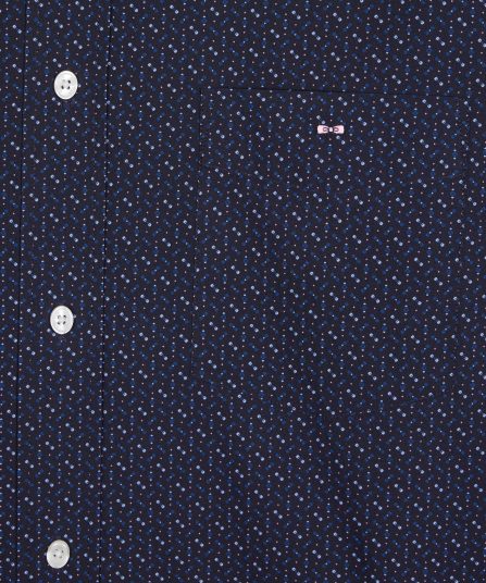 Chemise en coton marine à micro-motifs nœuds papillon coupe droite