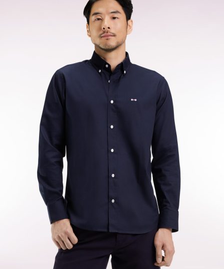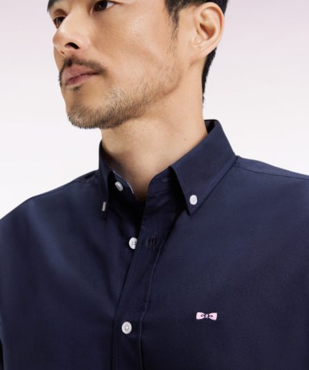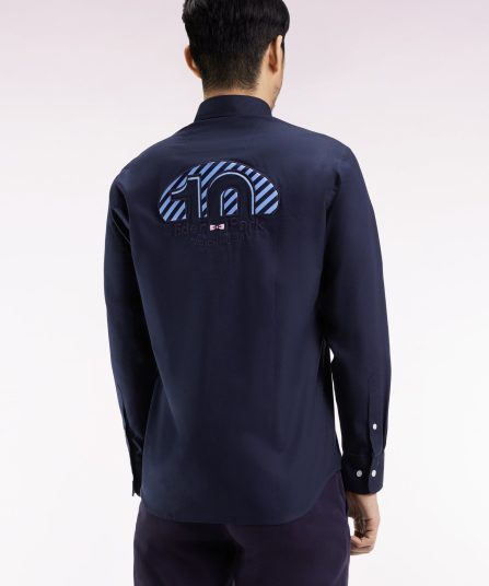 Déclinée dans un coton pinpoint structuré, cette chemise homme rend hommage au rugby avec subtilité. Le col et les poignets s’animent de détails en tissu cravate, tandis qu’un chiffre 10 brodé dans le dos vient affirmer son appartenance à un vestiaire de passionnés en rappellent le numéro de maillot historique de Franck Mesnel. Une pièce forte, à porter seule ou en superposition sur un T-shirt uni. Cette chemise homme à la coupe droite est déclinée en 3 coloris : blanc, bleu marine ou noir, s’accordant aisément à vos favoris comme à nos propositions mode de la saison