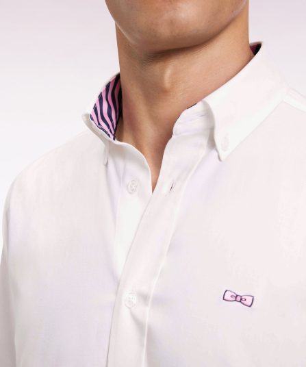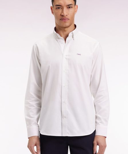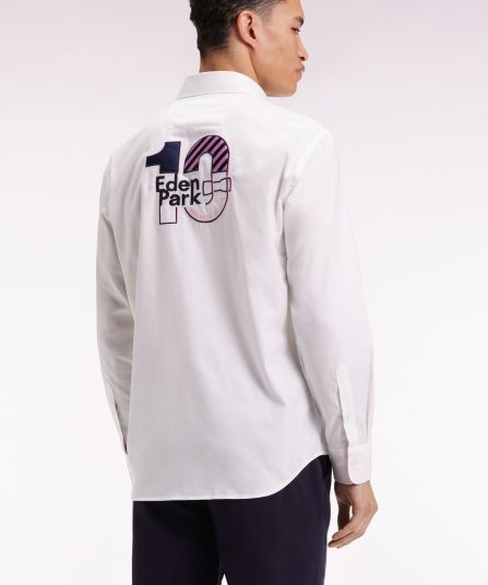 Hommage discret à l’univers du rugby, cette chemise masculine joue la carte de l’élégance sportive avec ses finitions signature. Confectionnée dans un coton pinpoint pour un porté structuré, elle s’anime de subtils détails contrastés en tissu cravate à l’intérieur du pied de col et des poignets. Au dos, une broderie exclusive, clin d’œil appuyé à l’héritage rugby de la maison, distingue cette chemise à la coupe droite. À porter seule ou ouverte sur un T-shirt blanc pour une allure sport-chic maîtrisée dans son coloris marine ou blanc