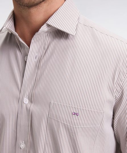 Derrière sa sobriété apparente, une construction précise et des finitions discrètes révèlent tout le savoir-faire de la Maison. Alliant coton biologique et fibres stretch, cette chemise homme conjugue souplesse, respirabilité et confort. Pensée pour une allure dynamique au quotidien, elle se distingue par ses fines rayures beige et ses finitions sport-chic soignées typiques du vestiaire Eden Park. Un clin d’œil assumé à l’héritage sportif de notre maison française, toujours revisité avec élégance pour habiller votre quotidien. Chinos ou jeans s’y accorderont en un clin d’œil