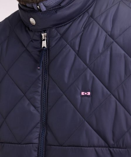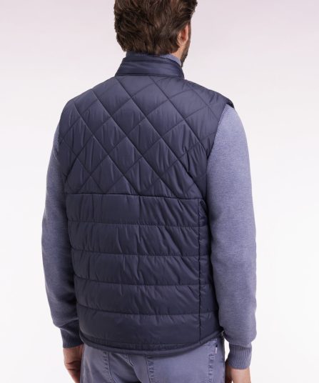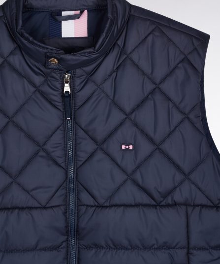 Doudoune sans manches col motard en nylon matelassé bleu marine
