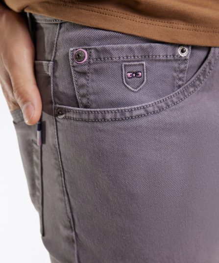 Ce jean 5 poches en toile de coton teintée se décline en gris, bleu gris ou en beige pour varier les styles toute en élégance. Sa coupe droite Regular assure confort et équilibre, tandis que les finitions signature lui apportent une touche French Flair originale et propre au vestiaire Eden Park