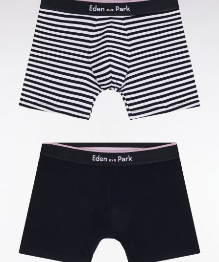 Lot de deux boxers en jersey de coton stretch marine et rayé