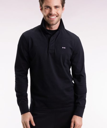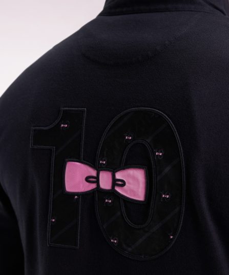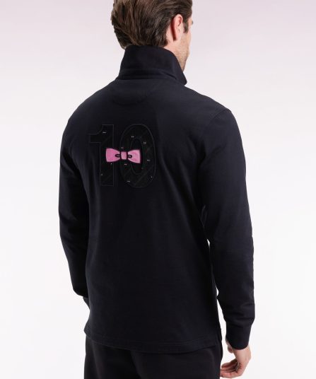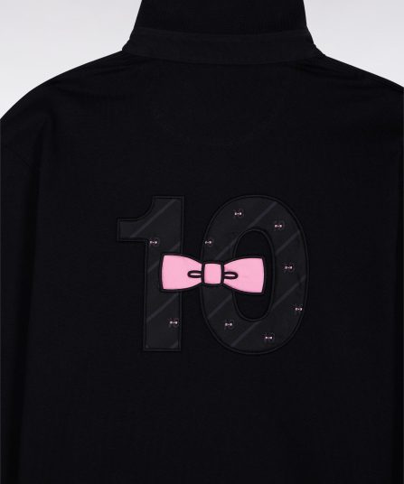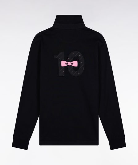 Maillot à manches longues en jersey de coton épais noir broderie nœud papillon coupe droite