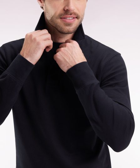 Maillot à manches longues en jersey de coton épais noir broderie nœud papillon coupe droite