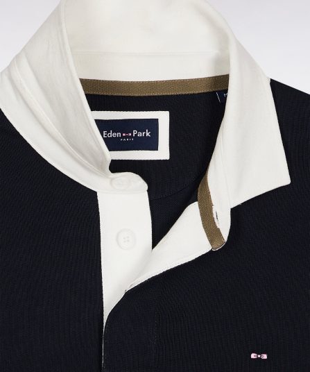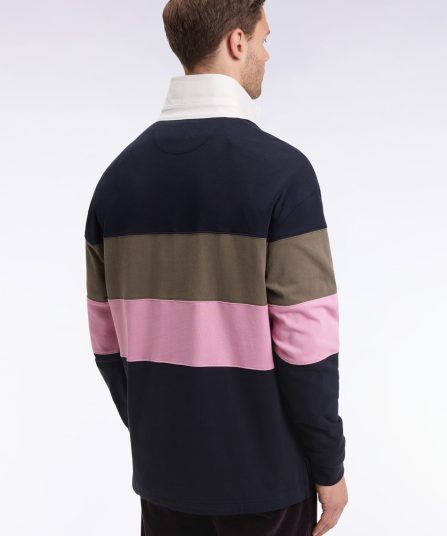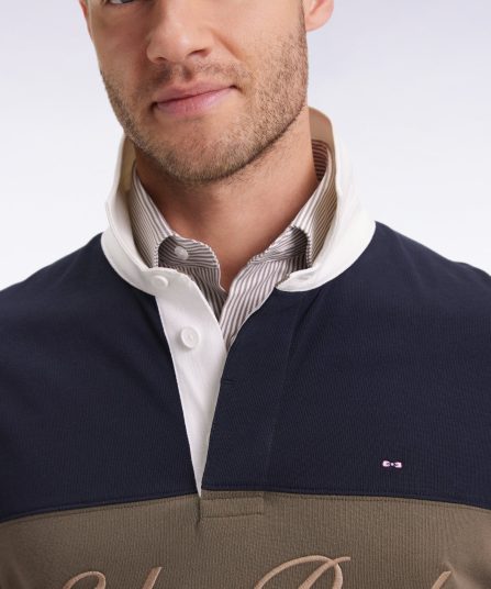 Clin d’œil au style preppy des campus anglo-saxons, ce maillot de rugby à manches longues en jersey de coton épais mixe rayures emblématiques et broderie vintage sur le devant. Un modèle à l’allure sport chic assumée, twistée par un col en twill contrasté et des finitions en ruban chevron à l’intérieur.