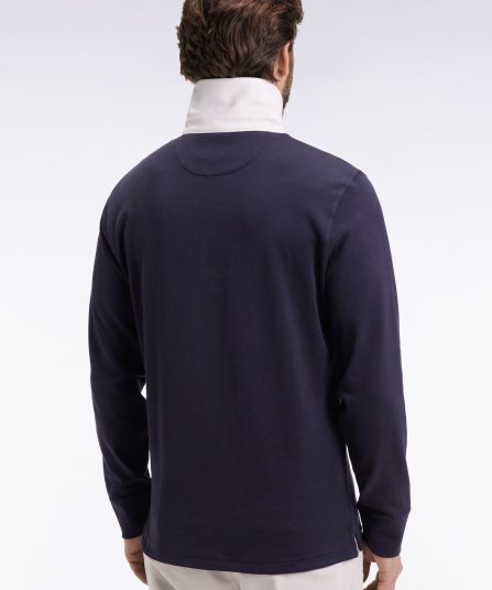 Le port de tête mis en valeur par un col maillot en twill blanc et un confort de porté durable garantit par la sélection d’un coton Pima écoresponsable : ce maillot marine en jersey à tout pour plaire. Un modèle emblématique des collections Eden Park à la coupe droite facilitant vos jeux de superposition.