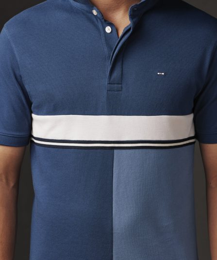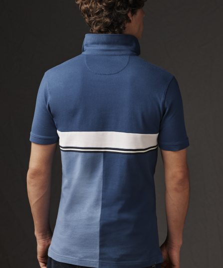 Pour réaliser ce maillot homme, notre atelier parisien a sélectionné dans les archives Eden Park deux maillots en jersey de coton stretch, l’un bleu foncé l’autre plus clair. Découpés puis associés en patchwork, ces maillots masculins donnent naissance à une pièce graphique à l’élégant camaïeu souligné par l’ajout d’un galon rayé et d’une bande blanche prélevée sur les stocks dormants de tissus de la Maison. Ce maillot Pap’Atelier est une pièce unique proposée sur notre site internet en taille M dans un seul exemplaire et pour une durée limitée. Son alter ego associant les mêmes coloris dans un montage miroir témoigne de notre engagement à valoriser l’intégralité de nos ressources, pour une mode plus durable et un style absolument unique.