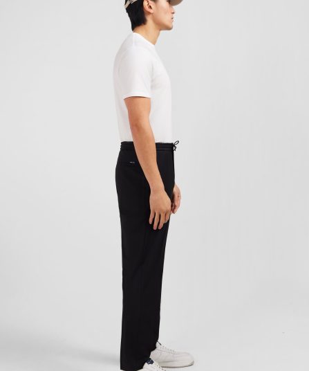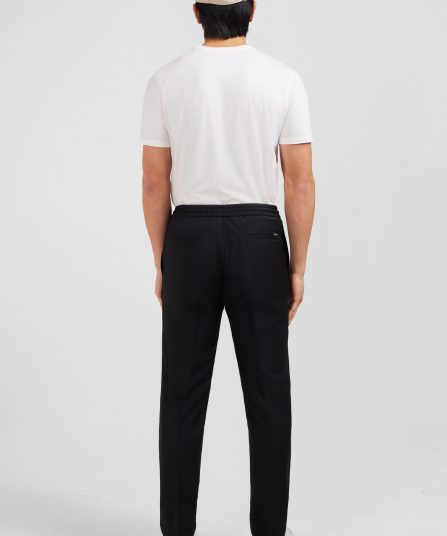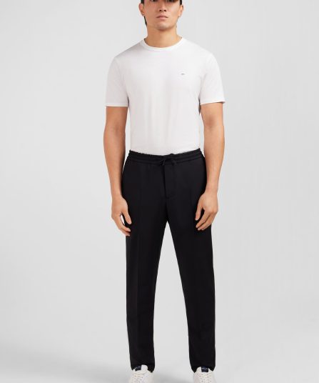 Contenant de la laine et du polyester, ce pantalon à la coupe droite est fluide et agréable à porter. Il possède une taille élastique avec cordons de serrage et des poches sur les côtés