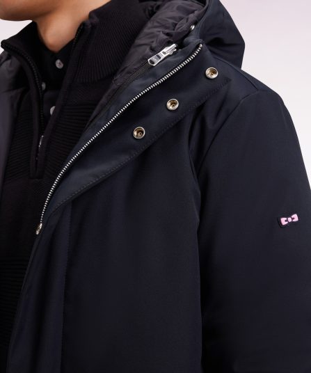 Pensée par le studio Eden Park pour conjuguer technicité et liberté de style, cette parka longue 2-en-1 en nylon déperlent s’adapte à toutes les situations. Sa partie extérieure, sobre et protectrice, dévoile une capuche intégrée et une fermeture à pressions magnétiques dissimulées. À l’intérieur : une doudoune manches longues matelassée, indépendante, dotée de sa propre capuche et d’un matelassage plus fin. Liées par notre ruban tricolore signature, ces deux pièces, déclinées en noir ou en marine, peuvent se porter ensemble ou séparément selon la météo et votre envie