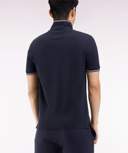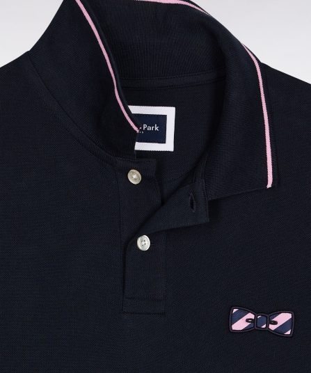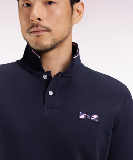 Col et bordures de manches contrastés, élégamment soulignés d’une rayure, apportent une touche athlétique à ce polo homme coupe droite. Pour plus d’originalité, ce modèle arbore une large broderie nœud papillon rehaussée de rayures rugby. Doté des mêmes finitions soignées que nos polos iconiques, ce polo en coton proposé dans trois duos de couleurs vous surprendra par sa versatilité et son confort
