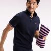 Col et bordures de manches contrastés, élégamment soulignés d’une rayure, apportent une touche athlétique à ce polo homme coupe droite. Pour plus d’originalité, ce modèle arbore une large broderie nœud papillon rehaussée de rayures rugby. Doté des mêmes finitions soignées que nos polos iconiques, ce polo en coton proposé dans trois duos de couleurs vous surprendra par sa versatilité et son confort