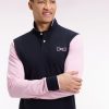 Polo à manches longues bicolore marine et rose à nœud papillon