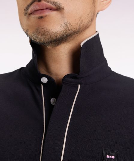 Ce polo en piqué de coton stretch ajusté est l’un des modèles les plus élégants de la collection automne-hiver. Ce modèle classique à la coupe slim, décliné en 3 teintes intemporelles, se dote d’un passepoil de couleur contrastée soulignant les contours de sa patte de boutonnage cachée. Un liseré le long de son col polo fait office de rappel subtil. Un style à part, reconnaissable au premier regard par les initiés comme par les amateurs de mode